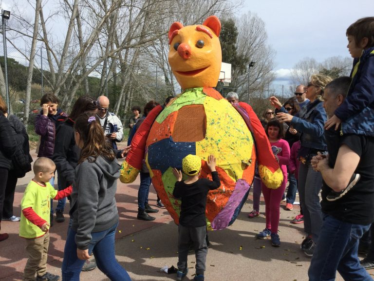 Juntament amb els altres dos gegantons de l'escola, el Jeroni i l'Harmonia, surten a la Rua del Carnestoltes del barri, i a les de Santa Eulàlia de Barcelona.