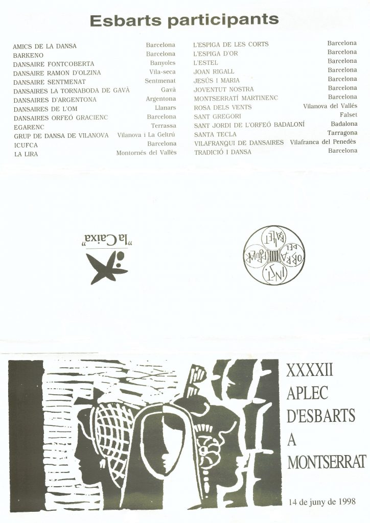 Interior del programa de mà del XXXXII Aplec d’Esbarts a Montserrat de l’any 1989.