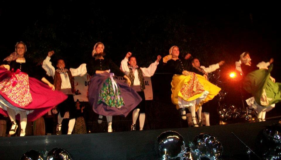 Actuació de l'esbart a l'escenari del barri de La Marina. Ballant la Jota foguejada de Benissanet.
