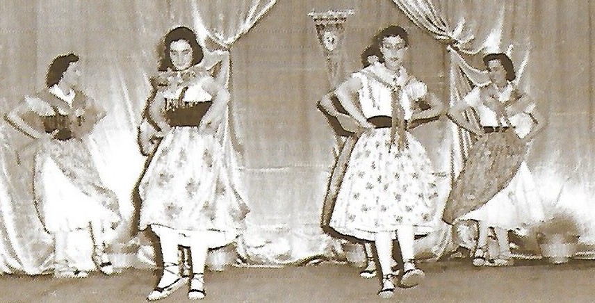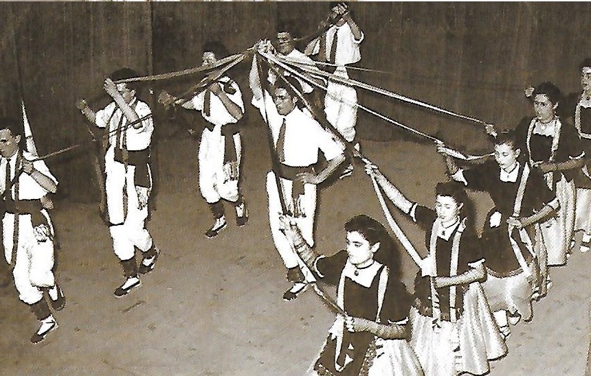 L’Esbart fent la salutació final del Galop de Cortesía de Gurb. Any 1950. A l’esquerra la cobla Cornellà.